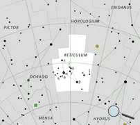 | A.D. : 04h 17m 35,81s (J2000) | Dec. : −62° 47' 01,3″ (J2000) | Magnitude : 10,60 ± 0,02 |